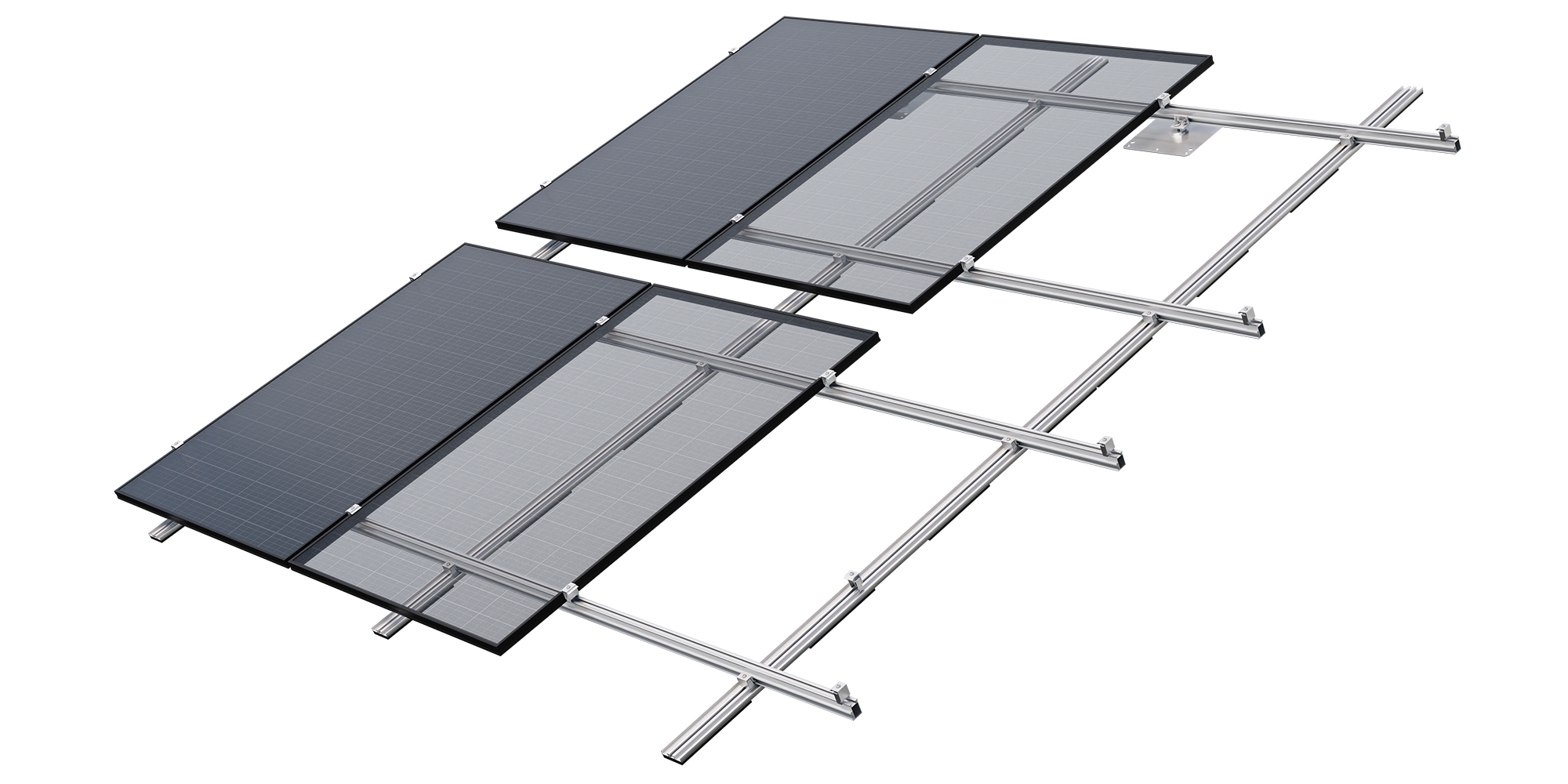 Sflex flat direct for foil and bitumen roofs. With flat direct, sflex offers an innovative PV mounting solution for roofs with foil or bitumen covering as well as sandwich roofs. The aerodynamic system is therefore particularly suitable for the roofs of commercial buildings with low load-bearing capacity.